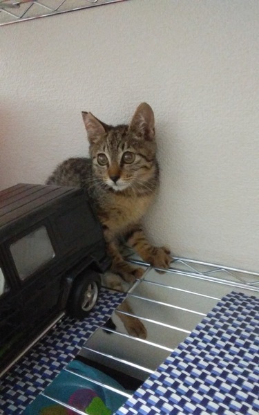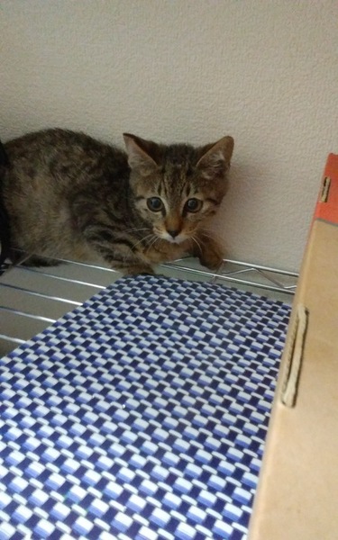 | 特徴(性格など) | キジトラ 捕獲器にかかった当初から、威嚇することなく体が触れ、餌をしっかり食べていました。 8月2日体重1100g、少し小さかったのですが去勢手術しました。桜耳になっています。 現在はフリースペースで、走り回っています。 人が部屋に入ると捕まりたくなくて隠れます。逃げます。 追い込んでブラッシングや爪切りをします。諦めて硬直するので、作業はちゃんと出来ます。 子守猫さんとともに、人慣れできるようにトレーニング中です。 子守猫さんがいれば、私がいてもおもちゃで遊んでいます。 できるだけ早く、しっかり向き合ってくれる方に引き渡しが出来ればいいなと思います。 |