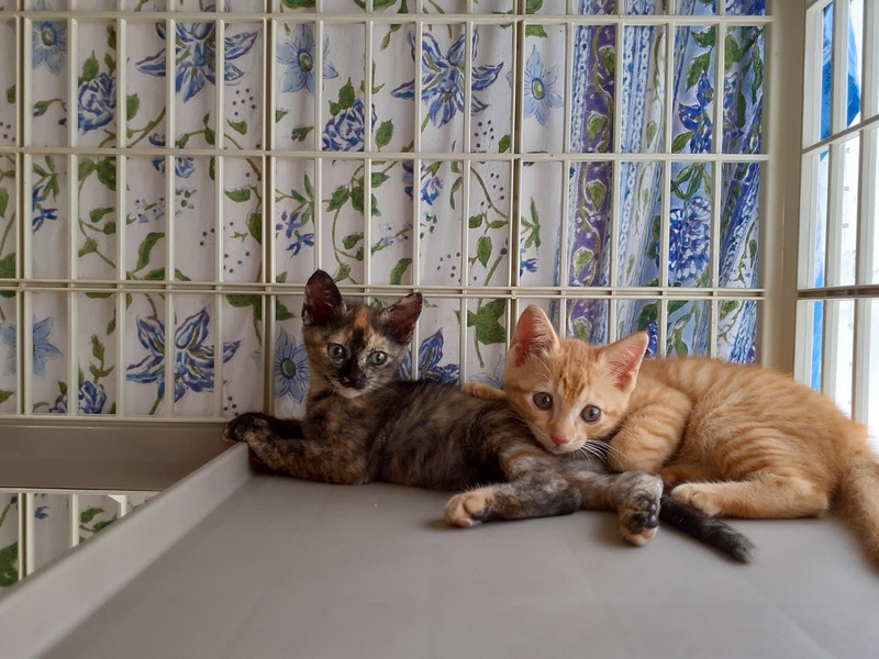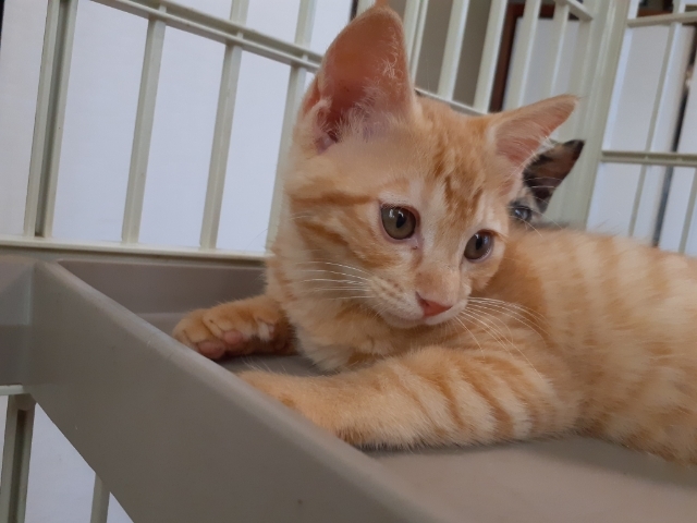 | 特徴(性格など) | ・茶トラのハルちゃん、サビ猫のうららちゃん、同時掲載の仲良し姉妹です。 ハルは、女の子には珍しい全身茶トラ。ちょっと垂れ目がなんとも可愛いく、花が咲いたように明るい子猫です。身体つきがしっかりしており、元気いっぱい、運動神経もよさそうです。人にも猫にもフレンドリーで、何でもチョンチョンとちっちゃい手で触ってきます。妹のサビ猫うららちゃんとの取っ組み合いはいつも優勢でやんちゃ姫ですが、うららちゃんの顔を舐めてあげ、優しいお姉ちゃんでもあります。 できれば姉妹そろって迎えていただければと思いますが、1匹ずつでも構いません。 |
