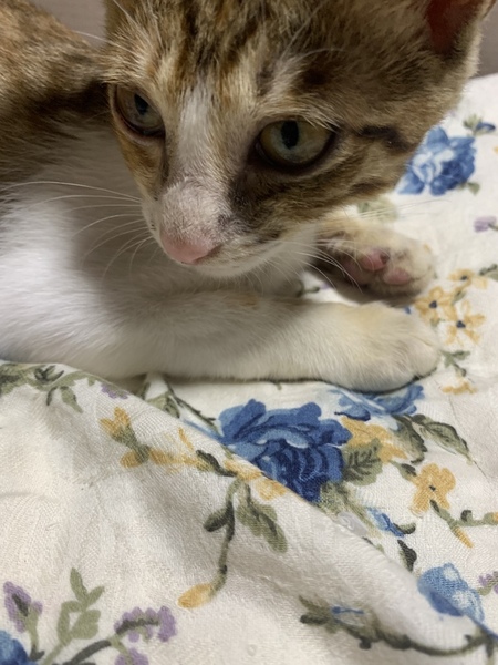 | 特徴(性格など) | ☆特徴・性格 茶トラ柄の子猫ちゃんで人懐っこく、よく寝てよく食べるとても元気な女の子です\(^o^)/ 目の色は黄色でシッポはとても短く珍しい形です(^^) ☆健康状態 保護した当初は痩せ細っており、ノミなどが付いていましたが、現在はノミなどの駆除は済んでおり、元気にご飯を食べているので1.5kgの標準体重になっています! |