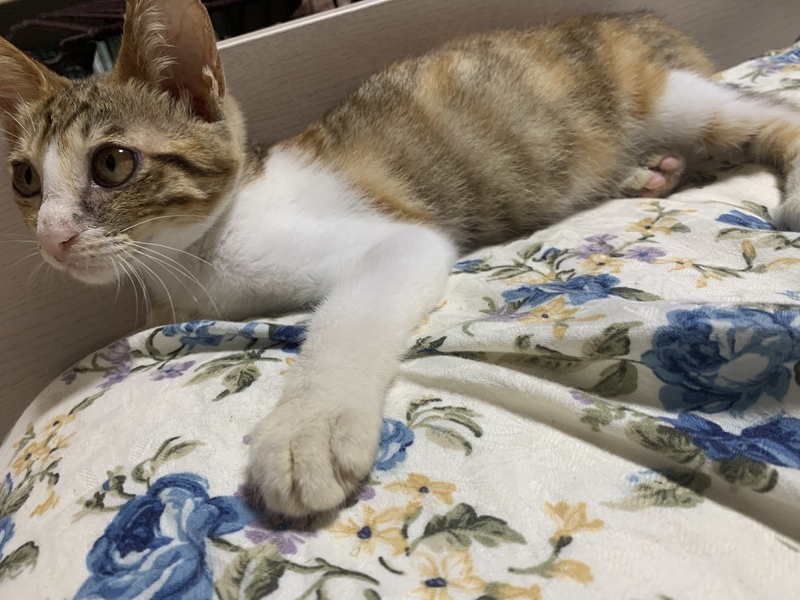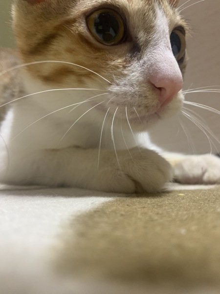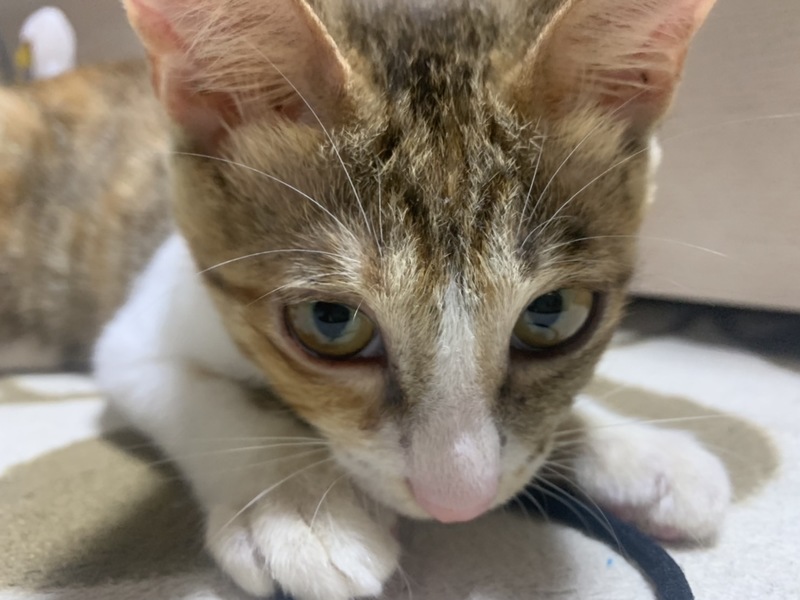 | 里親募集する理由 | 自販機の後ろでずっと鳴き続けている子猫をたまたま見つけ、雨も降っていて痩せ細っていたのでうちで保護をしたのですが、うちにはもう2匹先住猫がいるのでうちで育てることは難しく、里親募集をすることにしました。 外にいて寂しかったと思うので、出来れば長い時間お家に居られる方が好ましいです。 可愛がって頂けると幸いです。 よろしくお願いします(><) |