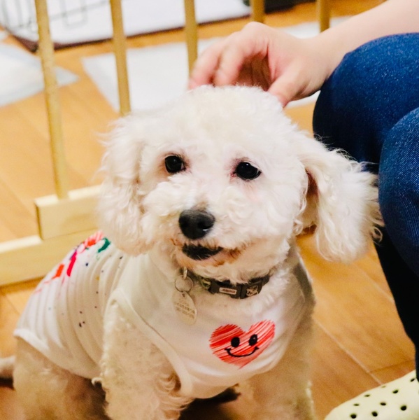 | 特徴(性格など) | 【性格】 人が大好きで、触って欲しくて前足で手招きする仕草がとても可愛い子です。 他の子とも仲良くできます。 【ご飯】 ドライフード(シュプレモでお願いします)40gを朝夕2回食べています。食欲旺盛です。 フードは療法食が必要な場合以外は、シュプレモでお願いします。 【お散歩】 スタスタと歩いてくれます。大きな音には立ち止まりますが、名前を呼んであげるとまた歩き出します。 迷子札は、首輪に刻印式のIDカラーで装着して頂く事と、ダブルフック型ショルダーリード使用のお約束をお願いします。 【トイレ】 トイレシートの認識はありますが、引き続き気長にトレーニングをお願いします。 【お留守番】 サークルの中で、お利口に過ごすことができます。 (ソフトサークルは、禁止とさせて頂きます) 健康状態 ※ 医療に関しまして、当会では、里親様にお繋ぎするまでに、検査や手術、治療等のレスキュー団体で出来る最大限の努力の上で譲渡活動を行っております。ご理解頂ける方のみご応募ください。 名前 まこもちゃん 性別 女の子 犬種 トイプーミックス 年齢 7〜8歳くらい 体温 37.9度 体重 7.58kg 口腔 歯石除去済み 抜歯15本 皮膚 異常なし 眼 異常なし 耳 異常なし 鼻 異常なし 膝蓋骨脱臼 異常なし 鼠径ヘルニア 異常なし 臍ヘルニ 整復済み 心雑音 異常なし 検便検査 異常なし 血液検査 異常なし フィラリア検査 済み 陰性 投薬済み(2021/7/29) レントゲン 異常なし 避妊手術 済み 心電図 異常なし ワクチン 接種済み(2021/5/27) 狂犬病予防注射 接種済み(2021/7/10) ノミダニ予防 済み 駆虫薬 投薬済み(2021/5/20) その他 腰の辺りに脱毛があります |