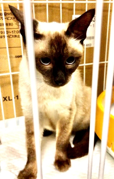 | 特徴(性格など) | シャム猫(ミックスかもしれないがかなりシャム猫が強くでている) の女の子です 大変優しい性格で元々人に飼われていたこなのか甘えんぼです トイレも教えなくても覚えて、車の中ではおもらししないなど賢い子です 無駄なきもしません 抱っこ大好きで肉球触らせてくれ膝乗りもします ケージに手を入れると顔を手にぐりぐりとおしつけ甘えます ケージいやがりません |