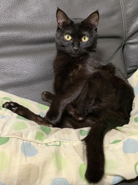 | 特徴(性格など) | 黒猫ですが、光によりダークブラウン 大人しく、人懐っこい性格 膝上で寝るのが好きです お昼は窓辺で日向ぼっこも大好き 名前を呼ぶと鳴いて返事をしてくれます 帰宅時等は、後をついてきて足にすりすり |