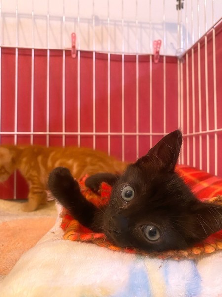 | 特徴(性格など) | 仮名 ティーラ 性別 オス 色柄 黒猫 7月7日頃生まれ 8月10日便検査済 8月10日レボリューション済 9月中旬頃エイズ白血病検査・混合ワクチン接種を予定しています ティーラはとても食いしん坊で甘えん坊さん ティーラという名前の由来は沖縄弁で太陽です |