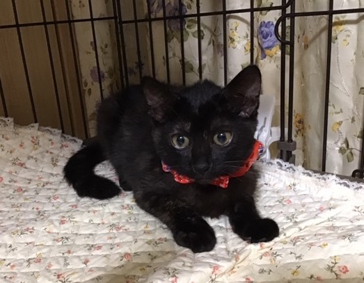 | 特徴(性格など) | クロネコちゃんといってもいいほどの、可愛いサビネコちゃんです。 性格は温和で人懐こいです。 |