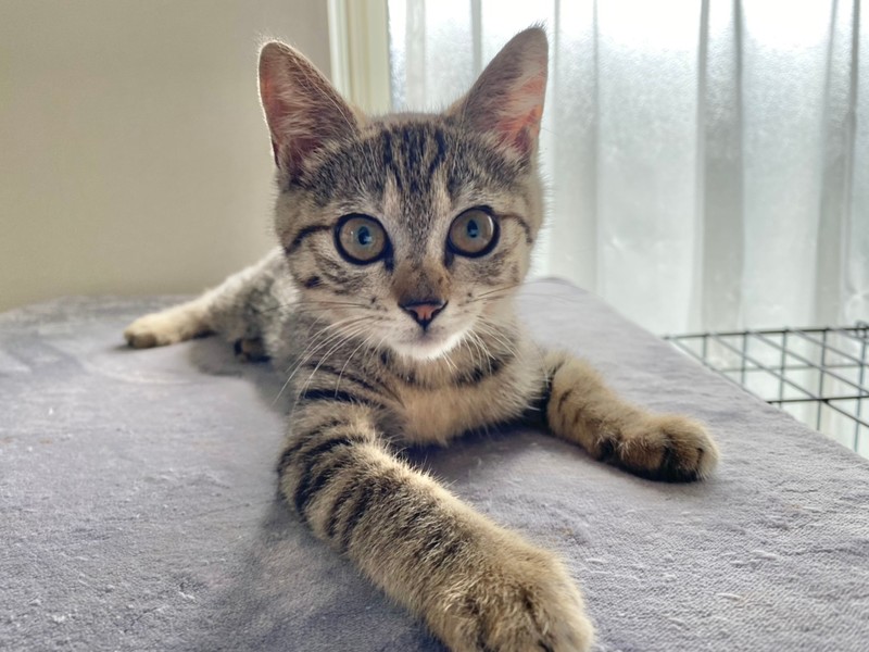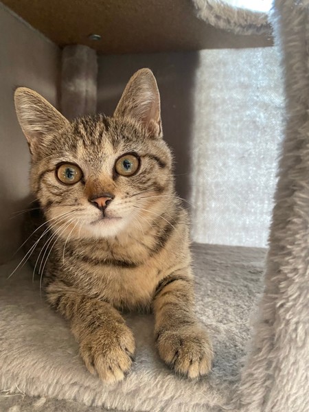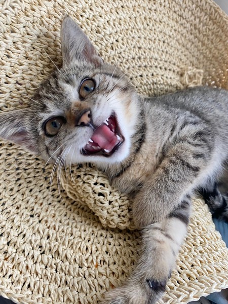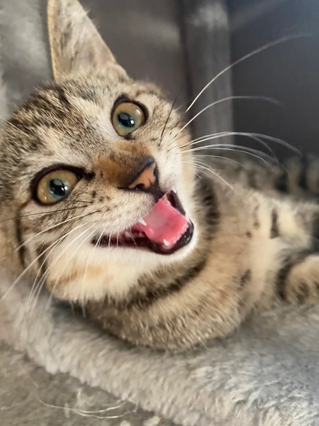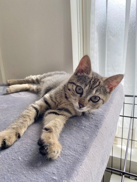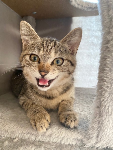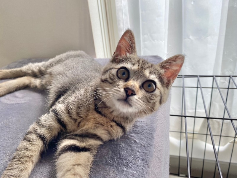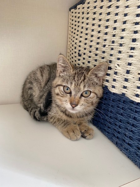 | 特徴(性格など) | 2021.6.1生まれ(推定) 毛色:キジトラ お目クリクリのキジトラの女の子。 好奇心旺盛で好きな場所に潜り込み、探検大好きです♪ ニャッと鳴いて甘え、撫でてもらうと嬉しそうに もっと~!と鳴いて甘えます♡ お友達との追いかけっこも大好き。 おもちゃは猫じゃらしがお気に入りです☆ |