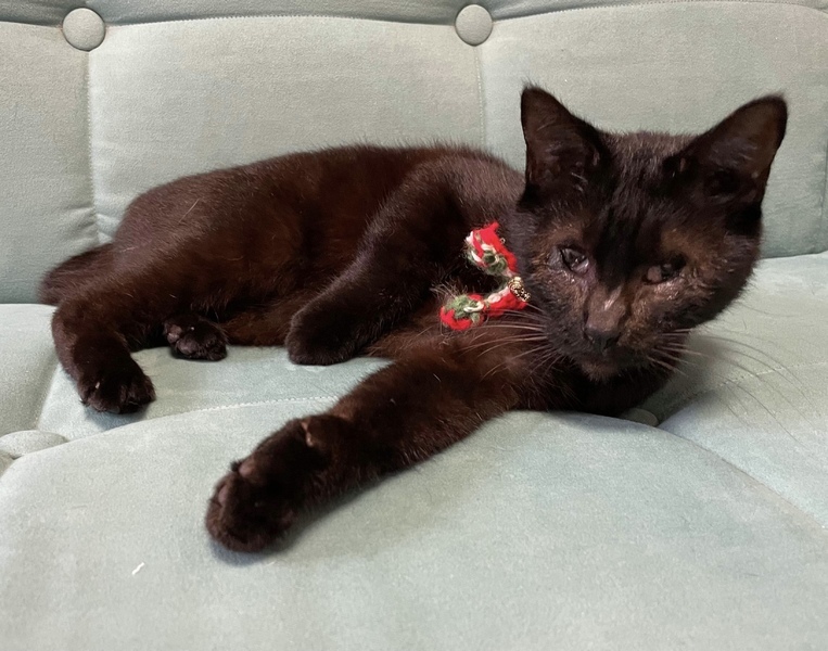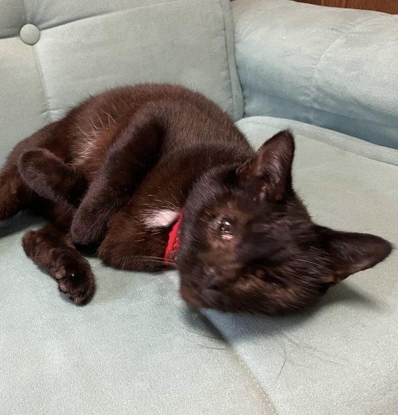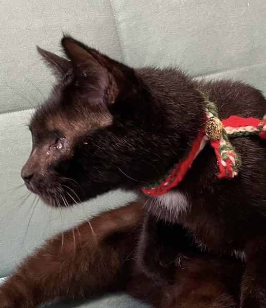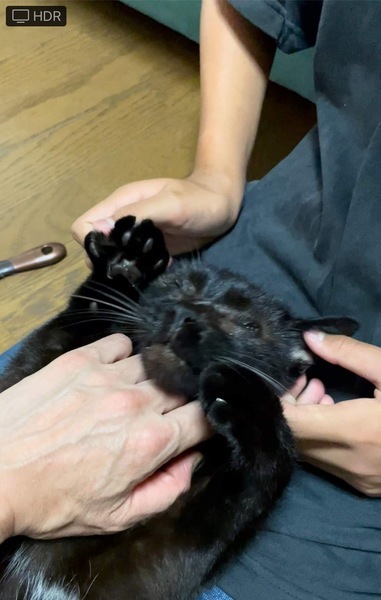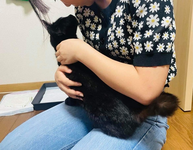 | 特徴(性格など) | クンクンと呼んでいます。最初は目を怪我して見えないと思われていたのですが、眼科専門の動物病院を受診した所先天性の全盲だったと分かりました。保護されるまでどのような生活をしていたのでしょう…赤い首輪をして去勢もされていたので飼われていたようなのですが。 飼い猫だったクンクンが、全盲で外界で生きるために身に付けた能力には本当に感心させられます。周囲を観察する能力(目以外の四感で)が長けているのです。先住猫2匹へのご挨拶もキッチリ!抱っこしてくれる人にはギュっと捕まって愛情を一身に受け止めてくれます。とても人懐っこいです。目が見えない分、忙しくしている人の様子も察しているのでしょう、邪魔してくる事は絶対にありません。目が見えなくても1階から2階、2階から梯子を使って屋根裏へもスイスイ登れます。保護されて1ヶ月経っていませんが、部屋の地図を覚えているので安心して動き回っています。 全盲というと可哀想に思われるかもしれませんが、一緒に生活していると全盲とは思えないほど上手に生きています。黒猫は「幸運を呼び込む縁起の良い猫」ですし、鍵シッポも「幸せを引っかけてきてくれる」そうです。性格良しのクンクンは、きっとステキな里親さんに巡り会い、里親さんにも幸運が舞い降りてくると信じています。 |