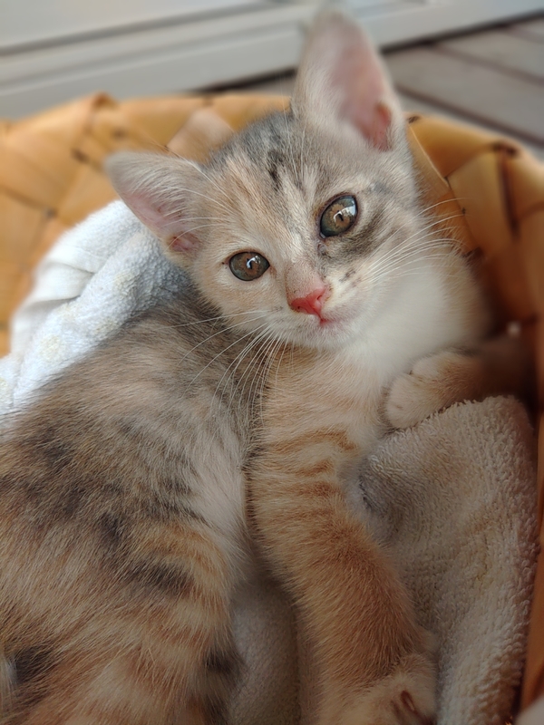 | 特徴(性格など) | 柔らかな毛色のパステルサビの子猫です。目の色も淡い茶色とブルーグレーがとても可愛いです。 生後2-3ヵ月程で、とても元気に育っています。 食べるのも、遊ぶのも大好き。トイレでの排泄も出来ます。 人懐こくて、シャンプー、爪切りもさせてくれます。 |