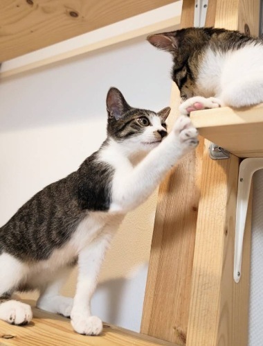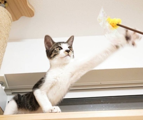 | 特徴(性格など) | 【仮名】フロモックスくん 【性格】4兄妹で保護されたフロモックスくん☆ まだまだ人なれ修行中で、たまに思い立ったように シャーと言うことはありますが実は抱っこして撫でまわすと ゴロゴロ言う超甘えん坊さんです♪ 兄妹で一番の慎重さんですが遊ぶのが大好きな元気っこです。 イケメンアクティブ男子のフロモックスくんと たくさん遊んでもらえればと思います。 兄妹のユナシンちゃんとのお迎えを希望します♪ ※1匹譲渡不可 |
