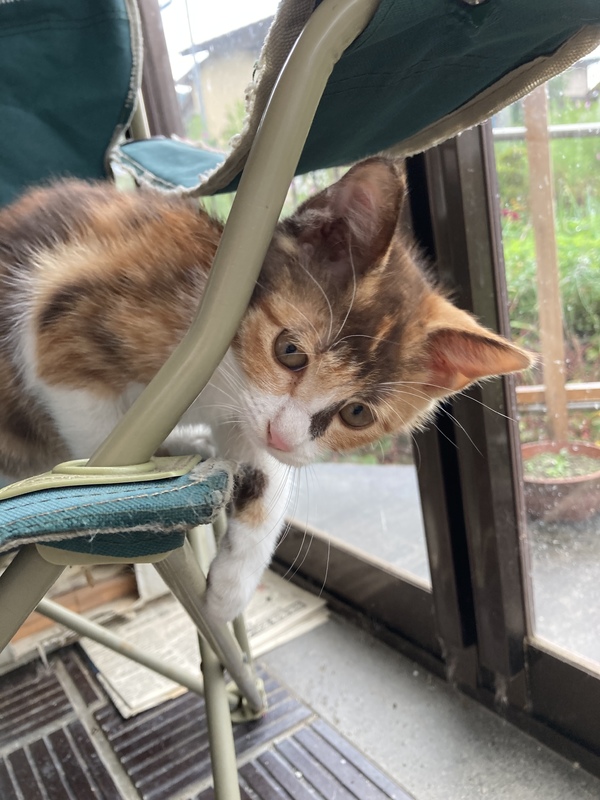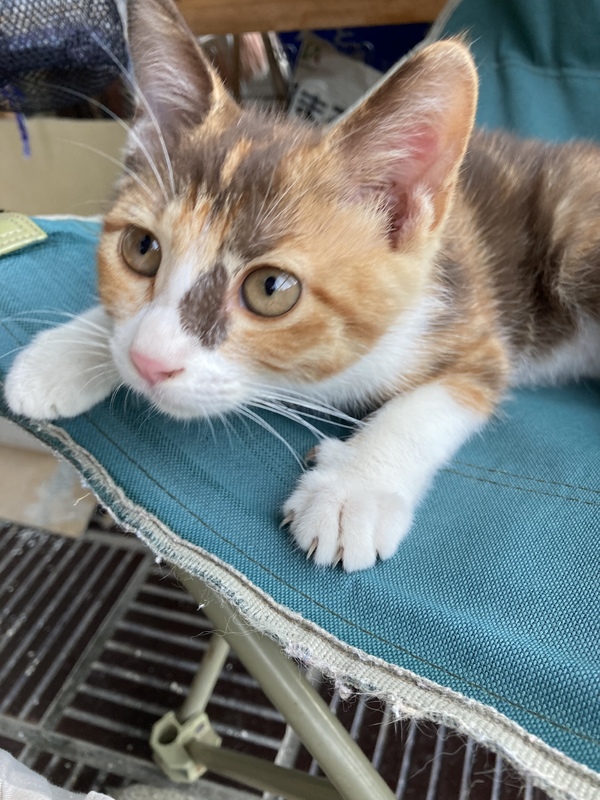 | 特徴(性格など) | 短毛の三毛猫です。人馴れしていてどこにでも付いてきます。 | ||