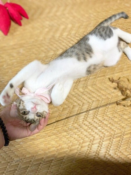 | 特徴(性格など) | 甘えたのみすずちゃんです。 スリスリのゴロゴロちゃんです。 走り回ってます。 兄妹でもよし、一匹ずつでもよし、どなたかご家庭にお迎え、よろしくお願いします! 健康状態 元気です。 ・ノミダニ回虫駆除済み ・エイズ(−)白血病(−) ・3種混合ワクチン接種 ・避妊手術済み |