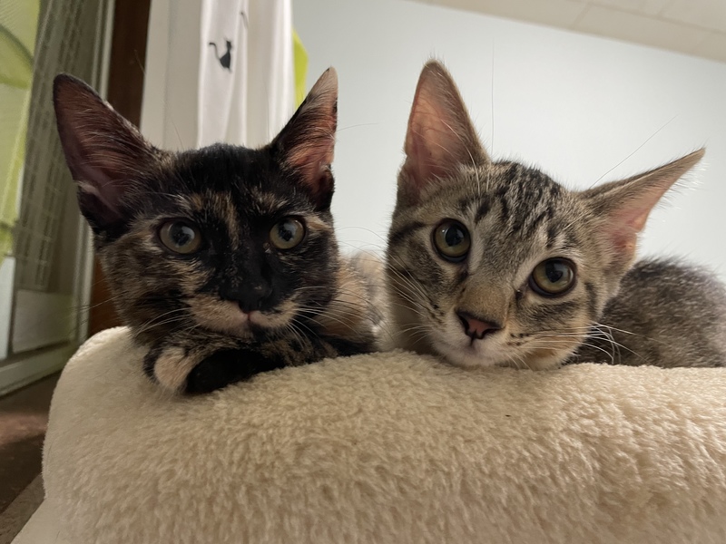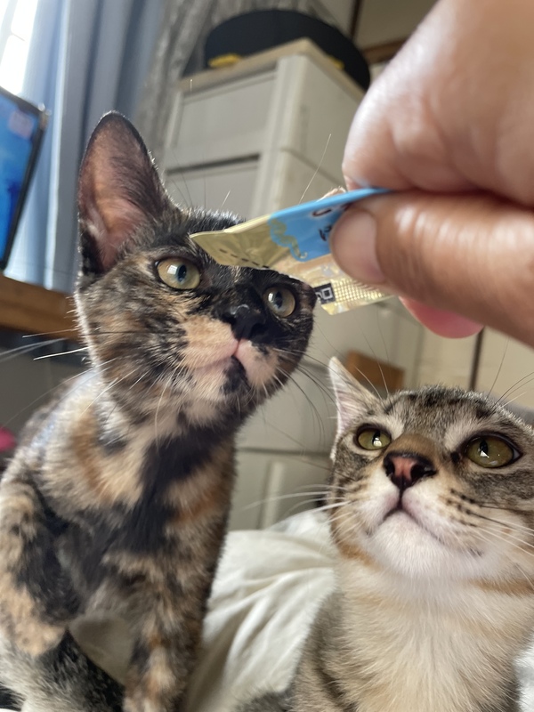 | 特徴(性格など) | キジトラ メス。甘えん坊 寂しがり、おっちょこちょい 高い場所から降りる時 グルルンって声が出ちゃいます サビ柄 メス。自立していて賢く 好奇心旺盛 ひょうきん者 妹の世話をして優しい性格です。 とにかくはしゃいで遊んで、疲れたら寝て、 食べて、ゴロゴロ甘えてきて、、 柄は普通ですが、人馴れ抜群で 空気を読めて性格良くて、 飼っていて楽しい猫達です |