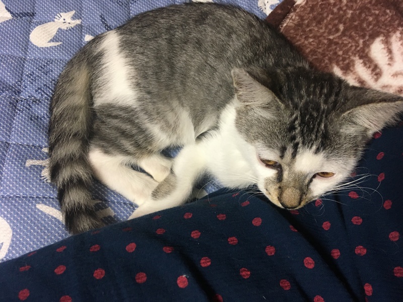 | 里親募集する理由 | 自宅の玄関前に1週間ほどおり、朝から晩まで鳴いていたため一時保護しました。 保護前から足にまとわりつき、かなり人懐っこい様子です。 すでに1匹の猫を飼っておりますので、新しい里親募集しています。 |