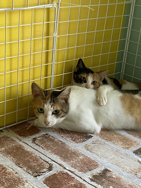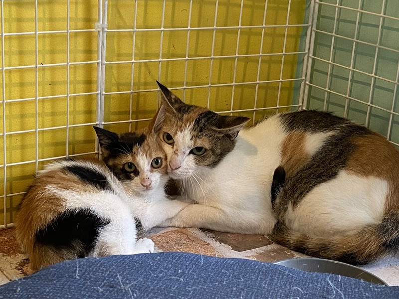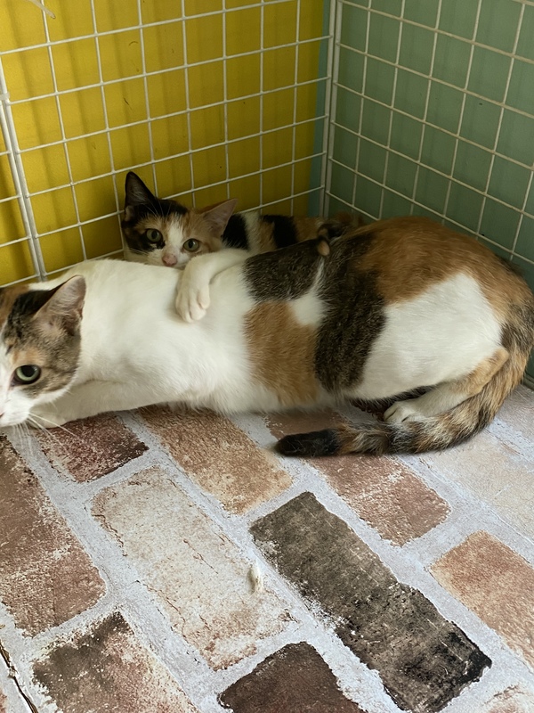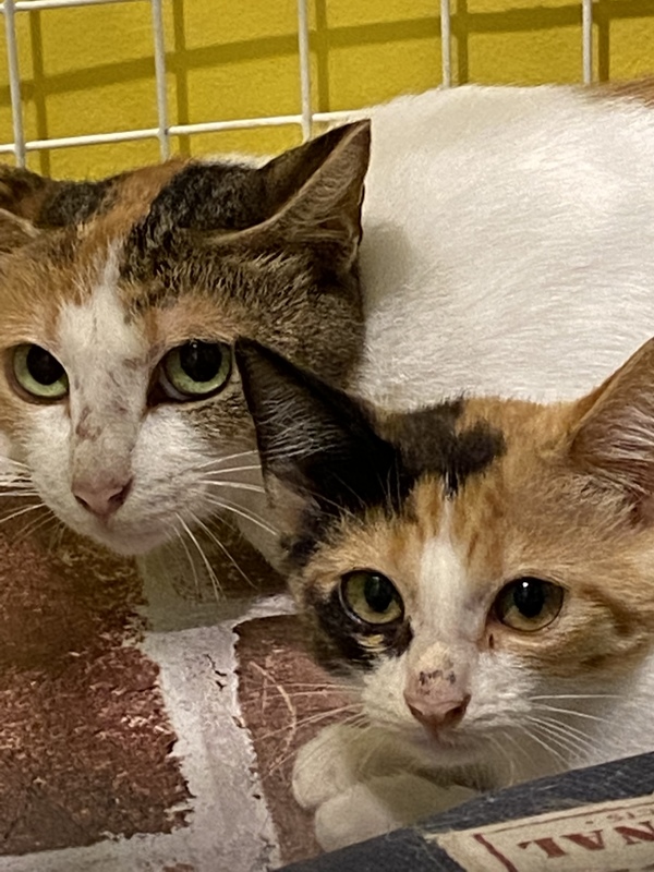| 特徴(性格など) | 母子とも三毛猫です。 保護されて2週間くらいですので、まだ様子を伺っている状況ですが、威嚇などはなく穏やかに過ごしています。 母子ともに近寄ってきたりはしますが、まだこちらからは積極的に触れたりはしていません。子猫は好奇心も旺盛で隣のケージの猫の様子を見にいったり、手を差し出したりしています。 |