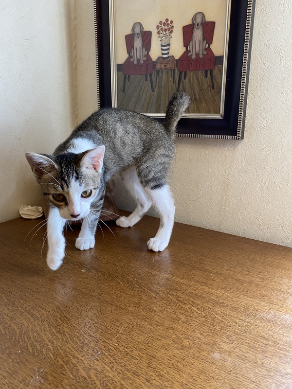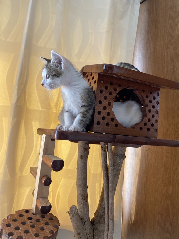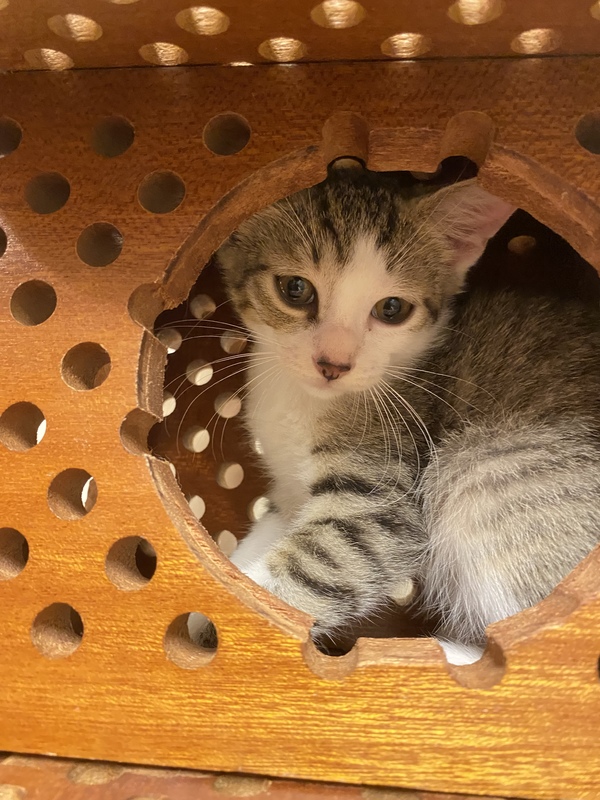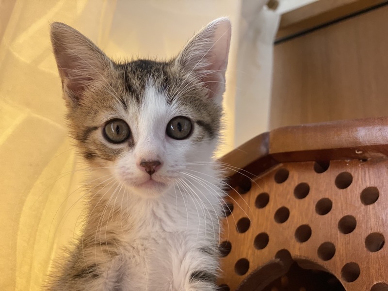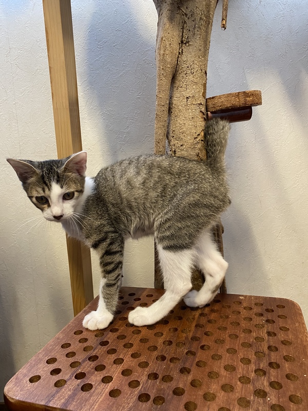 | 特徴(性格など) | ボブテイル?の男の子です。 母猫に甘えたり、兄弟猫や他の保護猫と遊んだり、兄弟で身体は一番小さいですが、好奇心旺盛で元気いっぱいです。 |