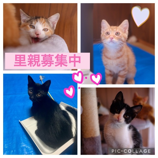 | 里親募集する理由 | 4匹兄弟で、排水路の中にいたのを大雨の前に保護しました。 捕まえにくい場所にいて、あの時保護しなければ大雨で流された可能性が高いので、命を繋ぐことができたのは本当に奇跡のような出来事だったなと思います。 現在一時保護してくださっている家庭では他にも複数の猫がおりずっと飼うことはできませんので、家族として大切に育ててくださるご家庭を必要としています。 |