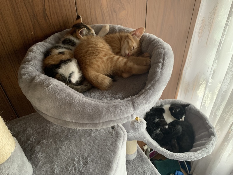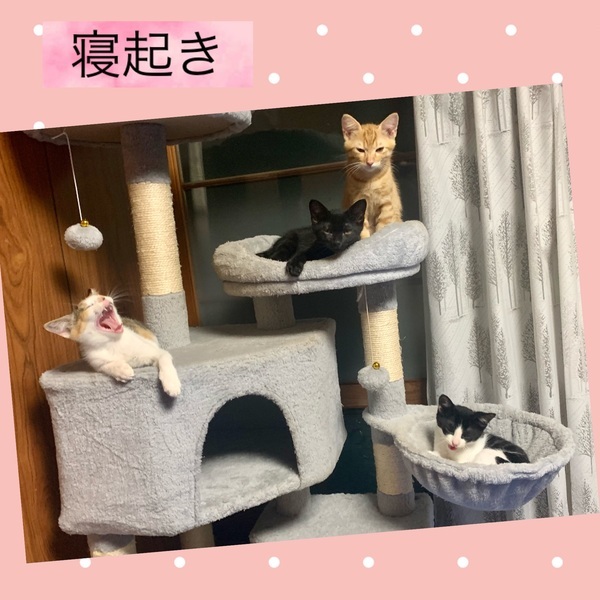 | 特徴(性格など) | 4匹きょうだいの子猫たちです。 排水路にいるのを大雨の前に保護しました。 最初は怯えて威嚇していましたが、今ではお膝でゴロゴロ甘えるようになりましたので、この子たちを1匹、あるいは複数で迎え、家族として大事に育ててくださるご家庭を募集します。 生後2.5〜3ヶ月くらい。 茶トラ(オス)ゴロゴロわんぱく坊主(でもビビり) 三毛(メス)穏やかでお茶目な女の子(美人さん) 黒猫(オス)やや繊細で甘えん坊(ちょっとおっちょこちょい) ハチワレ(オス)人懐こくてのほほんな甘えん坊 とっても元気で、じゃれ合ってよく遊びます。 色柄も性格もそれぞれ個性的で、かわいいです。 1匹ずつの募集ページも作りますのでぜひご確認ください。 きょうだいで仲良しなので、2匹など複数で一緒に家族に迎えてくださる方、歓迎します(1匹でも可)。 4匹全員: -エイズ・白血病陰性 -駆虫済み -トイレしつけ済み -まっすぐ座ったときの身長18cmくらい(^_^)♡ |