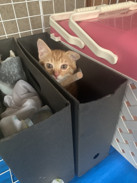 | 里親募集する理由 | 4匹兄弟で、排水路の中にいたのを大雨の前に保護しました。 捕まえにくい場所にいて、あの時保護しなければ大雨で流された可能性が高いので、命を繋ぐことができたのは本当に奇跡のようなことだったと思います。 現在一時預かりしてくださっている家庭では他にも複数の猫がおりずっと飼うことはできませんので、大切に育ててくださるご家庭を必要としています。 |