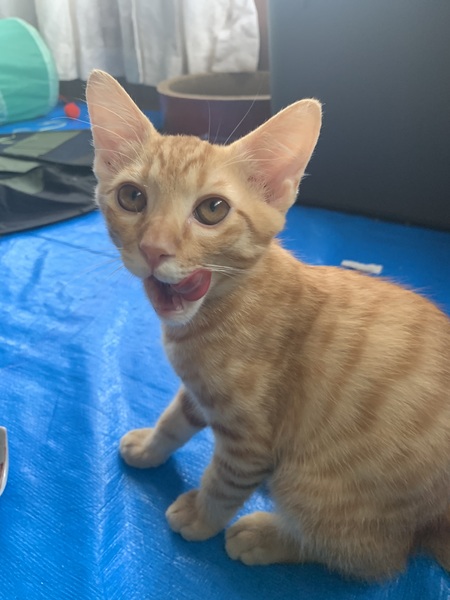 | 特徴(性格など) | ゴロゴロわんぱく坊主の茶トラです。 元気いっぱい、遊ぶのが大好きで甘えたの男の子。 生後約2ヶ月半から3ヶ月だと思います。 4匹兄弟で、排水路の中にいたのを大雨の前に保護しました。 兄弟の中で一番必死に遊びます(笑) 嬉しくてゴロゴロ言いながら遊び、ごはんを食べるときにもゴロゴロ言っちゃうのが愛らしいです。 好奇心旺盛で、箱の中に頭を突っ込んだり、おもちゃをくんくんしたり、転がして遊ぶ姿で笑いを誘うことも(^-^) クリクリのおめめと、短めでふわふわのしっぽがチャームポイントです♡ 体は4匹の中で一番大きいのにたぶん一番のビビリ屋ですが、実は甘えん坊で撫でられるのが大好きです。 新しい環境に慣れるまで少し時間がかかるかもしれませんが、将来はモフモフの甘えた抱っこボーイになる可能性大です。 1匹でも大丈夫ですが、兄弟で一緒に保護され仲良しなので、2匹など兄弟で一緒に家族に迎えてくださるご家庭を歓迎します。 他の3匹もそれぞれ別に募集ページを作りますので、よろしければぜひご確認ください。 健康状態:良好 エイズ・白血病共に陰性 ノミダニ回虫駆除済み(現在室内で保護中) トイレちゃんと指定の場所でできます 家族の一員として、終生責任を持って共に暮らし、面倒をみてくださる方、ご連絡ください! |