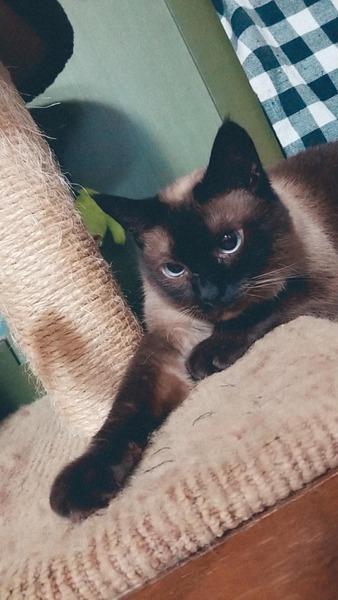 | 特徴(性格など) | シャムのような色です 目がくりくりで綺麗な青色をしています 性格はおとなしく少し臆病なところがありますが 慣れると人懐っこく呼んだらついてくるほどです 一緒に寝ころぶのが好きです |