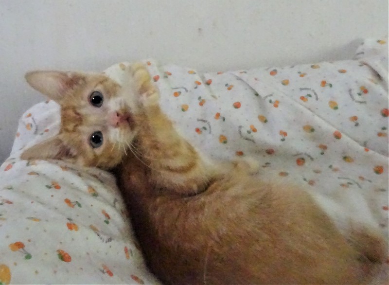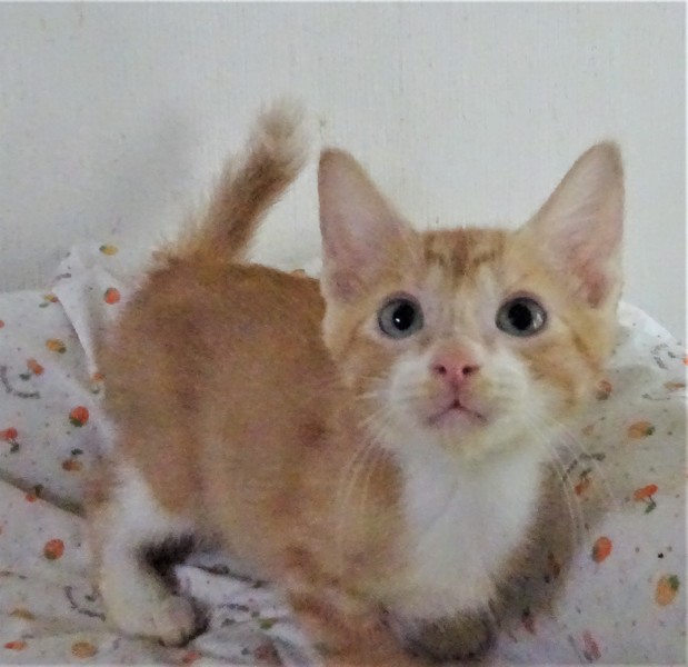 | 特徴(性格など) | 仮名: 茶太くん(オス) 毛色: 茶トラ 性格: 内弁慶なところがあり、ケージから出るとビビリです。ミルクから育っているので人馴れは問題がなく、威嚇なく抱っこ出来ます。 ご飯の催促の時は、ケージによじ登って鳴いて訴えます。 じゃらしでも遊べるようになりました。 他の子猫とは最近遊べるようになってきました。 訓練中です。 兄妹で追いかけっこしたりして遊んでいますので、兄妹の金太くん、ここなちゃんのどちらかと一緒のお家が希望です。 1匹の場合は、ご相談ください。まだ小さいので見守りが必要ですから留守番にはケージを使用されると良いと思います。 |