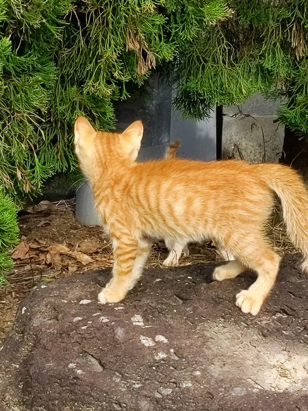 | 特徴(性格など) | 【色柄】 茶トラ 【性格】 かなり元気です。フードもよく食べます。 木に登ったり、兄弟とよく追いかけっこをして走り回っています。 なので、中々写真に収まってくれません。 |