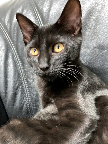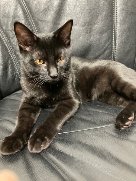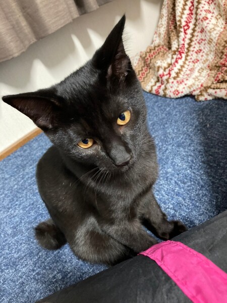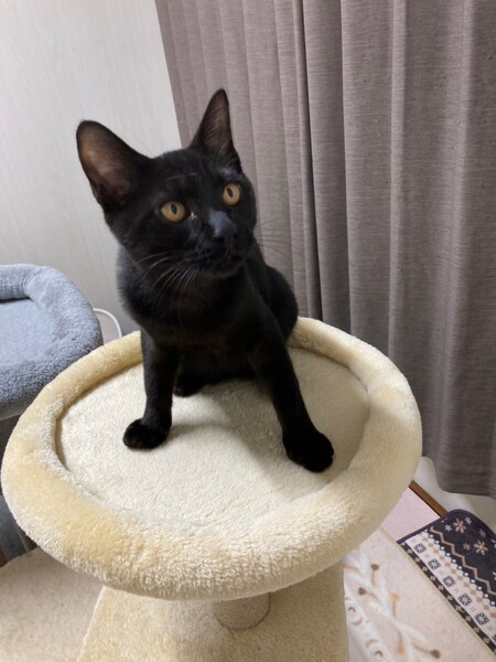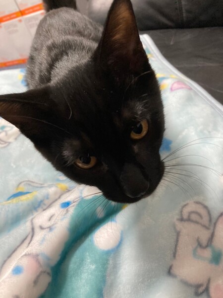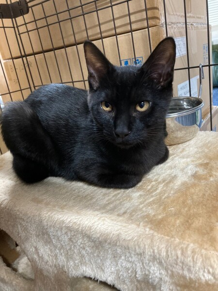 | 特徴(性格など) | 2021.5.24生まれ(推定) 毛色:黒 ブラックスモークというかなり希少な縞模様が体全体に入った男の子。 写真ではわかりにくいのですが縞模様がとっても綺麗です。 性格はなつっこく、抱っこも大好き! 自分から小さなボールを咥えてきて遊んでとおねだりしてきます。 しっぽは幸運のカギしっぽ♪ 撫でられるとゴロゴロと嬉しい表情をしてくれます♡ |