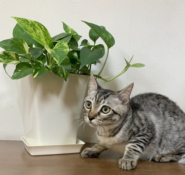 | 特徴(性格など) | しっぽは短めの薄茶の縞柄のサバトラです。 元気いっぱいでショウヘイ君とも仲良しです。 トイレ、フード問題有りません。 レボリューション、検便後駆虫済み。 2回ワクチン接種済み、ウイルス検査(猫エイズ、白血病共に陰性) |