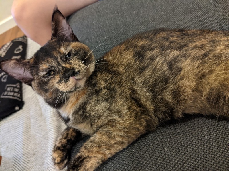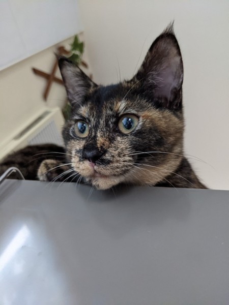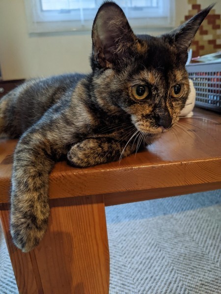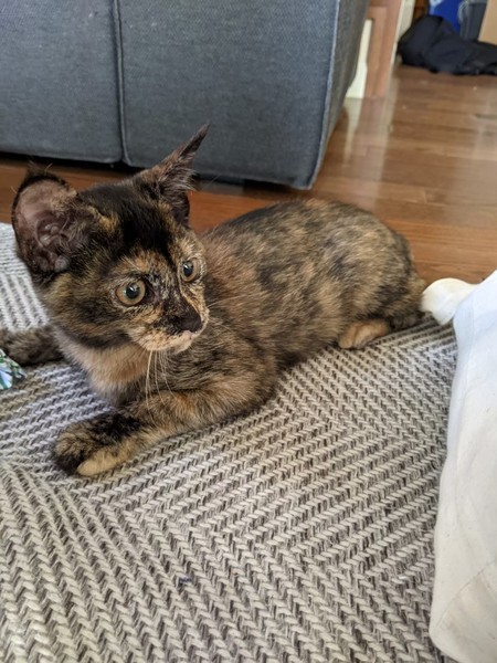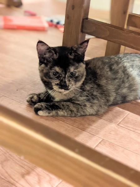 | 特徴(性格など) | 2021.4.7生まれ(推定) 毛色:サビ お目々くりくりのおしゃべり大好きなサビの女の子です。 目が合うと必ずニャ~と挨拶してくれます♡ ご飯の催促の時にはミーシャばりのロングトーンで思わず笑っちゃうほど!! ネズミのおもちゃが大好きです。 新しい環境にも物怖じせず、どんどん探検しちゃうタイプ♪ フレンドリーなので、猫とも人とも上手にお付き合いできます☆ |