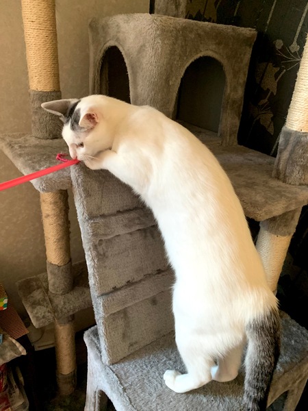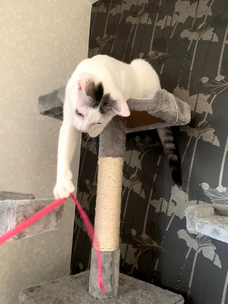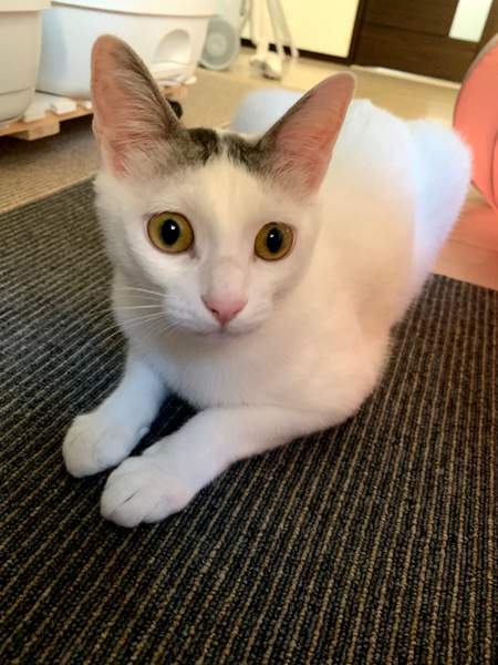 | 特徴(性格など) | 頭と尻尾以外、真っ白ふわふわです。 白キジだと思います。 遊びが大好きなヤンチャさんです♪ 高い所も好きでキャットタワーでは一番上を占領! 食欲旺盛!運動神経も抜群です。 時にはすごく甘えんぼになり、 座っているとピタッとくっついて寝ています。 元飼い主さんが、生後3ヶ月くらいから飼っていたので人慣れしています。 来客が来ても呼ぶと来ます。 我が家に来て最初はビビっていましたが、 3.4日で慣れました! |
