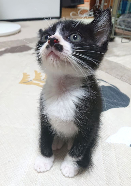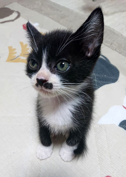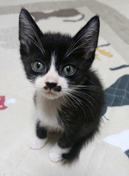 | 特徴(性格など) | オス 生後1ヶ月 ワクチン一回済み 駆虫中 ヒゲとタキシード姿が特徴です。しっぽ長いです。 |