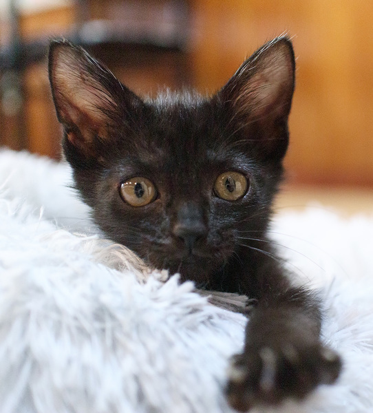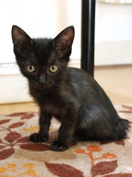 | 特徴(性格など) | 黒猫の女の子です。 ワクチン一回済み 駆虫中 しっぽはボブテイル(短いしっぽ)です。 |