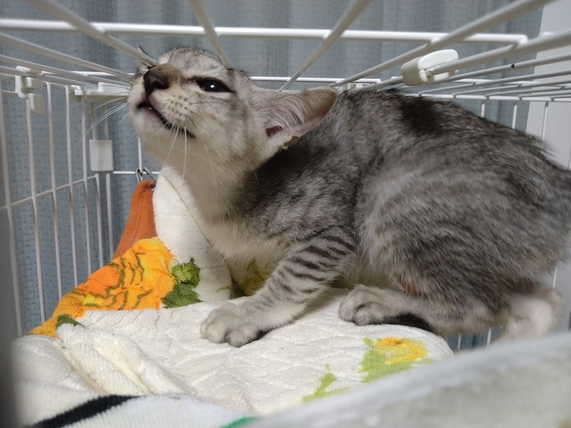 保護仔猫 隣県まで無料お届け! どなたか家族に迎えてあげてください。グレー、生後約3ヶ月