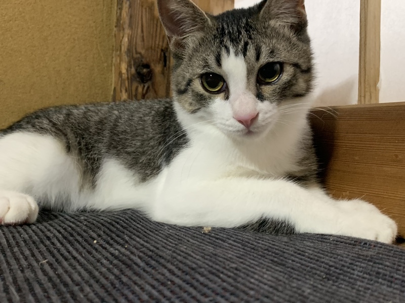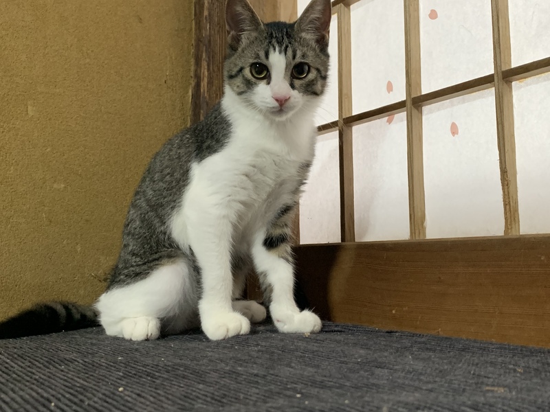 | 特徴(性格など) | キジ白男の子 天井からおっこってきた男の子の りく君です! チャームポイントは 大きなおめめとピンクのお鼻にツヤツヤの体です(*^^*) 遊ぶ時にはとても俊敏で私たちの方が遊ばれてるの??と思うこともたまにあります。 少し人見知りはありますが慣れれば抱っこをさせてくれます。 抱っこが大好きで良く首のまわりや鼻の匂いを嗅いだり顎に頭をコツンとぶつけてきたりくっつき虫な一面もあります? 社交的で、我が家の先住猫にも鼻の挨拶が問題なく出来、特に唸ったり威嚇したりは今のところみうけられません。少ししつこいところがあるのでたまにお姉ちゃん猫に怒られています( ˊᵕˋ ;) 高いところが大好きで お外の鳥さんや虫を見つけるとしっぽをぶんぶんさせながら ケケケと真ん丸なお目目で狙うところもさすが男の子!といったかんじがしてかわいいです☺️ お留守番の時はゲージにいてもらっているのですが、人の声がしたり影が見えると鳴き声で「だしてー!!」と訴えてきます。 傍に行ってりく〜って呼ぶと これでもかと言うくらい手を伸ばして 早く早くと私の手を引き寄せる可愛い一面も!! |