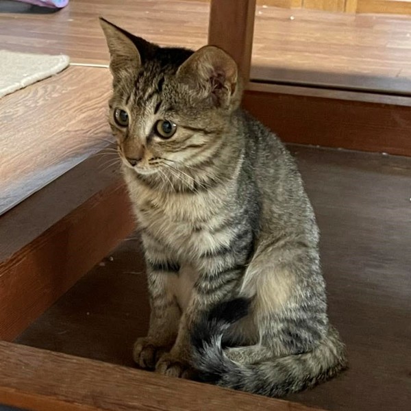 | 特徴(性格など) | 少し臆病です。人なれ訓練中。 食いしん坊なので、すぐそばまで来ます。 おもちゃは好きみたいですが、ゆっくり近寄っている間に、他の仔猫に取られてしまいます。 目が合うと逃げようとしますが、遠くまでは行きません。 知らん顔していると、足元まで来て寝ています。 検便済み。 ノミ・ダニ駆除済。 保護した頃、クシャミと鼻水の風邪をひいていましたが、病院でもらった薬を服用中で、ほぼ完治しています。 体重は1.7kg程。 |