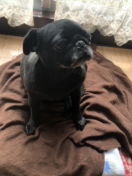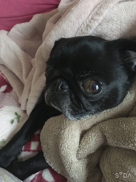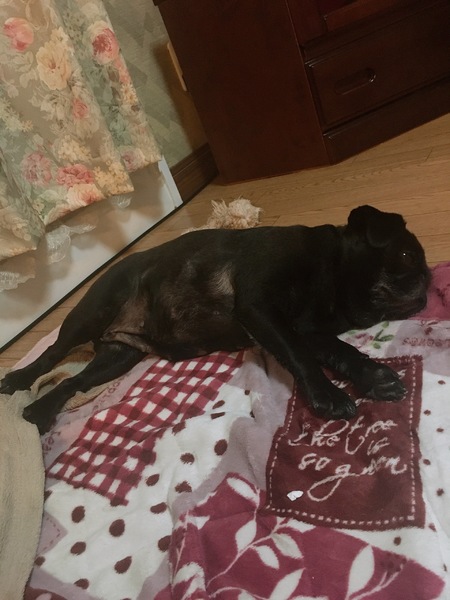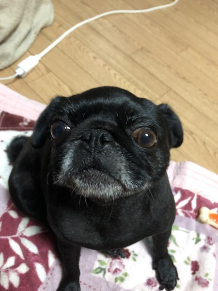 | 特徴(性格など) | 小さめの黒パグです。 人が大好きで、ずっと付いてまわります。めったに吠えませんが、飼い主が帰ってくると、嬉しくて吠えます。 寝る時は布団で一緒に寝ます。 トイレは完璧ですが、食糞癖があります。トイレをすぐ片づければ大丈夫です。引き取った後、子宮蓄膿症になり 去勢手術しました。その後健康状態は問題ありません。獣医さんに手術の際、内臓はきれいだと言われました。 フードはなんでも残さず食べます。 硬すぎるガムのおやつは食べません。 |