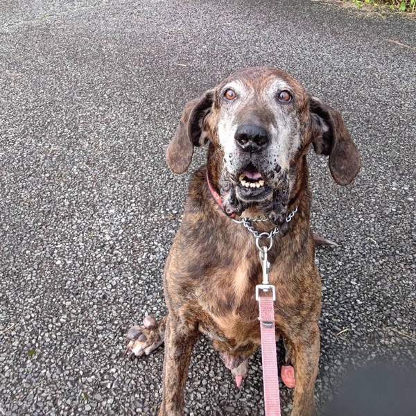 | 特徴(性格など) | 推定年齢7歳位。 体重32キロ。 フィラリア陰性。 とても人懐っこく、甘えん坊な、ぐっさんです! 犬種は、恐らくプロットハウンドですが、 猟犬として使われて来た感じはなく、 猟欲もありません。 マイペースな性格で、動きも、ゆったりとしています。 車に乗ることが大好きで、車内のクレートでとてもお利口さんにできます。 お散歩も、ゆったりと匂い嗅ぎを楽しみながらでマイペースですが、ちゃんと人の横に付いて歩く事もできます。 《他犬に対して》 対犬に関しては相性があるので、ぐっさんが、のんびり穏やかに過ごせるためには、1頭飼いが向いていると思いますが、他犬に関心の無い先住犬でしたら、多頭飼育も可能です。 マイペースな子ですので、のんびり穏やかに過ごせるご家族を探したいと思います。 《お散歩》 現在は1日2〜4回・1日total2時間程。 お散歩が大好きです! お散歩の引っ張りも無く、匂い取りをしながら、マイペースに歩いています。 慣れるまではダブルリードでのお散歩をお願いします。 《トイレ》 今のところ外派です。 マナーパッドも嫌がらずに付けられます。 《食事》 1日2回。 皮膚のデコボコが増えにくいよう、少し脂の少ない食事にしています。 《日中の過ごし方》 お散歩以外の時は、預かり宅のお庭をフラフラし、気が済むと、庭の中に留めてある車の中のクレートに自らハウスして、寝ています。外の風や空気を感じれる所が好きな様に思います。 基本的には、預かり宅の犬達とは、離れてひとりでゆっくり寛ぐのが好きですが、 一緒に遊べそうな犬とは、遊びます。 《無駄吠え》 基本的にありません。 救急車やインターホンも反応しません。 が、吠えるとやっぱり声は大きいです! 多少吠えても大丈夫なお住まいの方に、お願いしたいです。 《ぐっさんの足先口周りのボコボコについて》 全身に原因不明のイボがあります。 特に目立つのが足先口周りです。 岐阜大学と北海道大学へ、組織検査へ出しましたが、悪性腫瘍でもなく、原因も解りませんでした。ステロイドや抗生剤の投薬、注射と色々と試しましたが、身体への負担の割に改善は少なく、中止し、 現在は、ボコボコの酷い足先口周りにヒビタス軟膏を塗っています。 レーザー治療や液体窒素も効果があるかもしれませんが、近くに出来る病院がなく費用も高額な為、現在検討中です。 ぐっさんの日常生活↓ https://www.instagram.com/p/CTdtJXgnsLO/?utm_medium=copy_link |