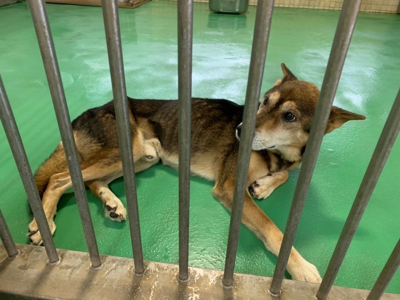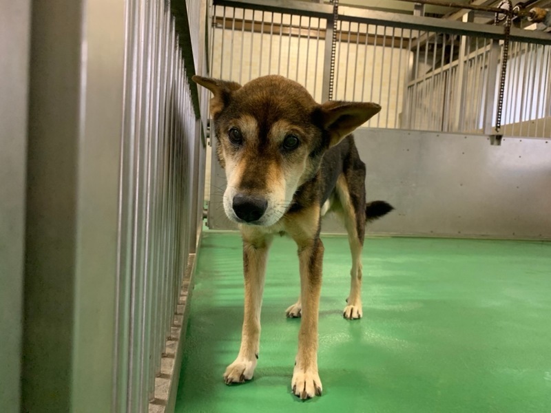| 特徴(性格など) | お声掛け無く期限延長となっております。 あまり若くはないようで見た目の推定10歳〜位?と思われる可愛い男の子ฅ•ﻌ•ฅ 大きめの中型雑種でガリガリに痩せています。アバラ、腰骨がはっきりと浮き出ています( ; ; )適正体重は15キロ位かなと思われる子ですが、痩せ過ぎの現在の推定体重は10キロ前後位でしょうか( ; ; ) 毛はパサパサしていて栄養不良な感じですし可哀想に汚れていてブラッシングやシャンプー、口腔ケアなどをしてもらえていなかった様子( ; ; )歯石もそれなりについています。 綺麗にブラッシングやシャンプーなどケアをしたらもっと美犬君になる事でしょう(^^) お座りやマテなど教わってきていないのか、言ってもキョトン?としていました。 最近ではおやつがあるとお座りしてフセもしてお腹を見せて触らせるようになりますます可愛いです♡ 優しい職員さん方が怖くないよ、今度こそは幸せになれます様にと毎日触れ合いながら、一生懸命にお世話してくださっています。 尻尾を振って静かに寄ってきて、撫でて〜と甘えたりするようになったとの事ฅ•ﻌ•ฅ 無理もありませんが急に触ったり動いたりすると驚いて噛もうとしたので目が見えにくくなっていたり、 耳が聞こえづらくなっているのかもしれません(;_;) ビックリさせたら可哀想なのでゆっくり声掛けしています、手からも食べてくれますし無駄吠えもせず、殆どケージの中に入って寝て過ごしています。 大人しく穏やかですが収容中の他犬(男の子)には威嚇していました(^_^;) 相性もあるのでしょうが男の子は嫌いなのかもです。 子供パワーいっぱいの若い子より、落ち着いた子と暮らしていきたい方にピッタリな、シニア犬ならではの魅力があるワンちゃんだと思いますฅ•ﻌ•ฅ 職員さんが連れ出してくれるお散歩は嬉しそう♪楽しそうでしっかり片足を上げて排尿しています(^^)痩せていますしリードの引きの強さは問題無く制御出来ます。 でも急な走り出しや後退りからの首輪抜け・胴輪抜けなども想定し、どんな子であっても油断は禁物で脱走、逃走には充分な配慮と注意が必要ですm(_ _)m この子のペースや体力をみながら寄り添う時間を取ることの出来るご家庭を希望しておりますm(_ _)m ⭐️必ず室内飼育で、譲渡後速やかに病院受診、健康診断、(血液検査、尿便検査、ノミダニ・フィラリア予防やシャンプー等)混合ワクチン接種をする事が可能な、なるべくお留守番が少ない、沢山優しくスキンシップやコミュニケーションで触れ合っていただけるご家庭。 ⭐️狂犬病予防接種、フィラリア予防や混合ワクチン実績の有無は不明です。 フィラリア陽性の可能性も有り得る事となります(>_<) ⭐️室内でのトイレトレーニングも1からとなります。 未去勢で片足を上げて排尿します。 何かと手がかかり大変ですが(マナーベルトやL字型のトイレ、ペットシートを用意など)覚悟と理解で受け入れて下さる方。 ⭐️出来れば中型〜大型犬の飼育経験があり愛情を持って接することが出来る方、この子の体力を見つつ朝晩のお散歩や運動、コミュニケーションに充分時間をあてられる方、何卒宜しくお願い致します。 ⭐️(今のところ殆ど吠えませんが)吠えても大丈夫なご家庭。 以上の点を踏まえ、この子の置かれている状況、傷ついているであろう心をご理解の上、全て受け入れ、寄り添いながら愛情を注いでくださるご家庭で可愛がっていただきたいと願っております。 保健所収容された全ての子達は身勝手な人間による被害者であり、何も悪くありません( ; ; ) 家族の一員として生涯大切にしてくださる優しいご家庭とのご縁が結ばれ、お散歩から帰っても嫌な檻の中では無い、家族の皆さんとずっと一緒に居られるお家、これからの寒さも安心して快適に過ごせるお家が見つかります様に。 首輪をしていましたし今まで人間を信じ、人間と共に生きてきた筈です。 1日も早く温かな愛情を目一杯注がれながら、元気に幸せに生きてほしいです。人間より遙かに短い生涯です。 冷たく硬いコンクリートの上、狭い檻の中でひたすら優しい素敵な里親様を待ち続けています。 悲しい事にこの世の中、人間に飼われないと犬は生きていく事が出来ません。 捨てる飼い主、探さない飼い主、医療にかけない飼い主、虐待する飼い主…飼い主を選ぶ事も出来ません。 家族を必要としています。 最期は大切な家族の一員として、この子の全てを受け入れて下さる、優しい素敵な里親様の元で穏やかな余生を過ごしてほしいです。残るこの子の犬生を生涯大切に可愛がって下さる優しい素敵な里親様、どうかお願い致しますm(_ _)m もうこれ以上悲しく辛い目に遭わせたくありません。 本当の愛情、温もりを知ってほしい、辛かった分、寂しかった分、今後はのびのびと幸せいっぱいに愛し愛されて、生きてほしいと願っております。 家族の一員に迎え、愛情溢れるご家庭で一緒に暮らして頂けませんか。 何卒宜しくお願い致