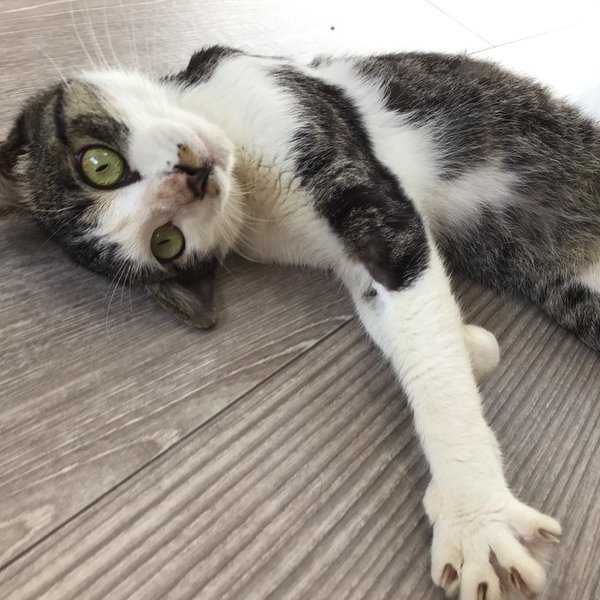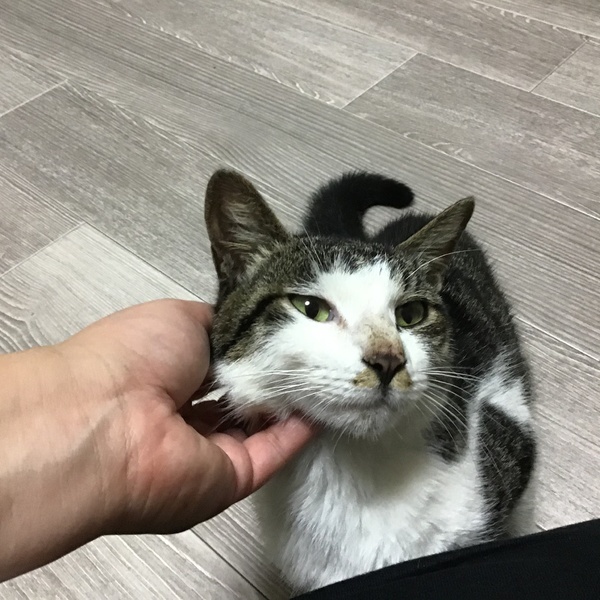 | 特徴(性格など) | 撫でただけでも足がフミフミの動きをしている甘えん坊です。 この年齢まで野良なのに無事に生きてこれたのが不思議なくらい、人が大好きです。(これだけ人慣れしているので、一定の年齢まで誰かが飼育していた可能性もあります) 1年超の野良暮らしで飢えを経験しているからなのか、とにかく必死に人間の後を付いていこうとします。 室内トイレにはすぐに慣れました。現在はシステムトイレを利用してもらっています。 トイレは一度も失敗せずおりこうさんです。 体重は2.6kgで痩せ過ぎ体型。 |