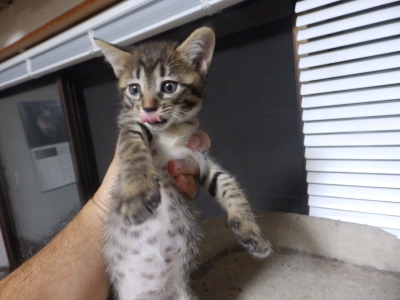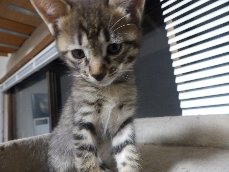 | 特徴(性格など) | 典型的な和猫・キジトラです。三姉妹の末っ子で、姉たちより少し小さいですが元気な女の子です。トイレトレーニング完了。カリカリもパウチもよく食べます。 | ||