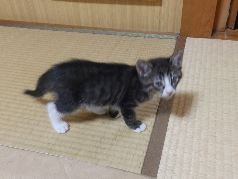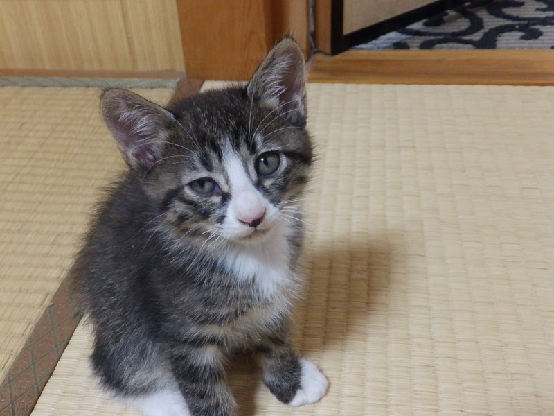 | 里親募集する理由 | 親戚の隣家の子猫、といっても9ヶ月くらいの猫が妊娠してしまい、若い初産なので母体の健康を考慮して今回限りは産ませたようです。ご老人の家庭でネット募集もできないため、経験のある私のところに相談がありました。現在は我が家の先住猫たちと過ごしています。 | ||