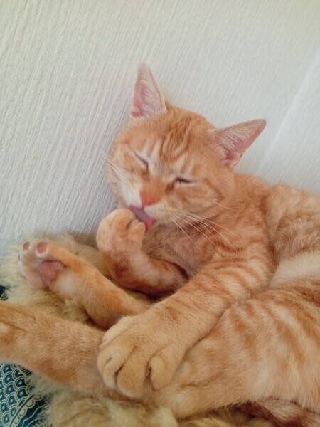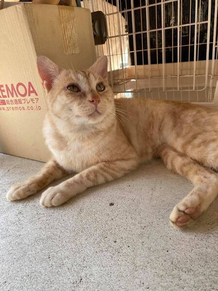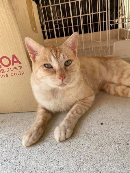 | 特徴(性格など) | 成ネコ、男の子、記載の誕生日は想定でしかありません。体重約 約6kg 獣医さんも私も中年期(4歳~7歳)ではないかと推測しています。 食欲旺盛で運動能力も高く、とても元気で可愛い声で呼んでくれます。保護時は痩せ気味でしたが今では存在感のある良い体格です。全身薄いベージュで少々の縞模様が上品で美しい姿です。 保護して数日でニンゲンにとてもフレンドリーに接するようになりました。コーミング、爪切り、目やに拭き等々何でもおとなしくさせてくれます。抱っこもOKです。勿論トイレもお行儀よく使ってくれます。快眠、快便で健康優良ネコちゃんだと感じます。 強いて欠点を考えてみると随分食いしん坊で貰ったゴハンをワンちゃんのように大急ぎて一気に食べてしまう事です。これはこれまでのひもじいホームレス暮らしが影響してありつけるときに食べておきたいという習癖だと感じます。許してあげてください。フードの好き嫌いは一切見られません。(我が家では先住ネコも含めドライフード、鶏胸肉をあげていて ウェットフード、チュールのようなおやつは避けています。) |