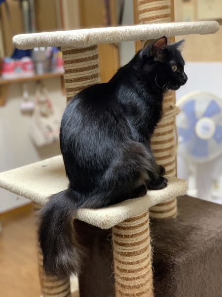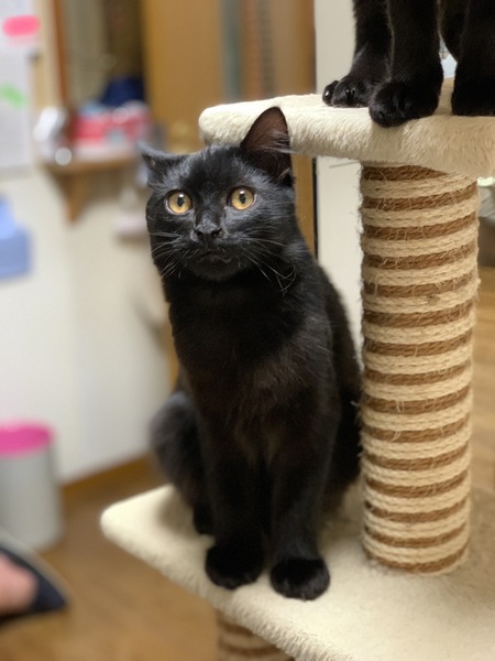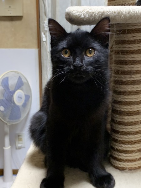 | 特徴(性格など) | 下半身がふわふわの不思議な子です。真っ黒よりは茶色ぽい感じです。 人馴れバッグン、抱っこは保護初日から大丈夫でした。 元気で、遊び大好き。 他の猫ちゃん共仲良しです。 トライアル期間あります。 |
