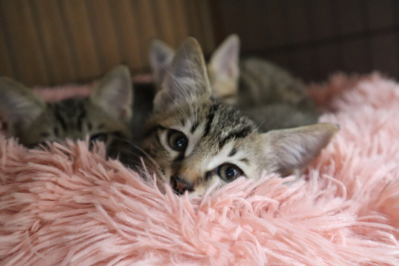 | 特徴(性格など) | 人が大好きなキジ・キジ白の3兄妹です。 元気いっぱいでいつも兄妹わちゃわちゃと遊んでます。 |