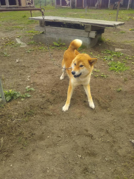 | 特徴(性格など) | 典型的茶色の柴で均整のとれた体格です。 最近ケージで隣に強い犬が居て臆病に少しなったという話です。 |