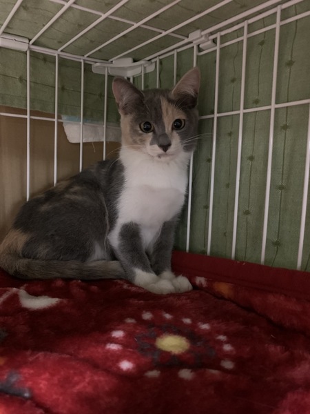 | 特徴(性格など) | グレーとベージュの珍しい柄のとても可愛い三毛です。 とても人懐こく 抱っこが大好きです。 とても可愛い家猫になる事間違いなしです。 |