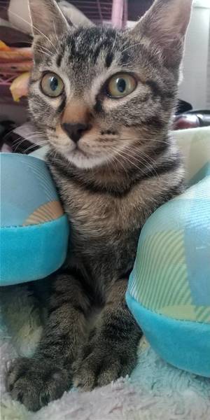| 特徴(性格など) | 味わい深い表情のキジトラ男の子 環境に慣れるまで、数日必要です。 遊び好きの甘えん坊 自分から膝に乗りそのまま眠ってしまいます。 何となくぽ~っとしていてのんびりした性格です。 |