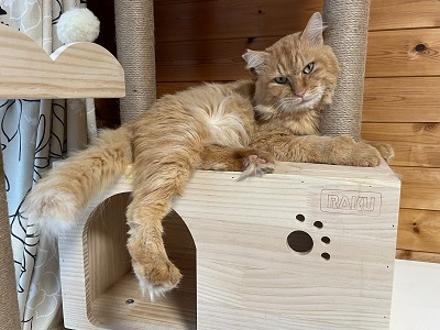 | 特徴(性格など) | とてもしっかりした体で大きく貫禄あり!良く食べます! 顔はいかついけど呼ぶと鳴いたり、シッポで返事してくれる可愛い子です ブラッシングも大好き♪ |