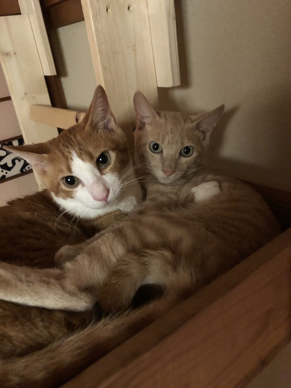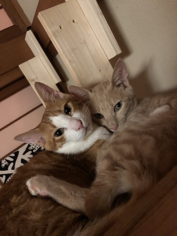 | 特徴(性格など) | ミルクから育てたので人慣れしていて可愛いです。最近は少し怖がります。 四か月なので心配も少なく飼いやすいと思います。 2人寄り添って寝てる姿は最高に可愛い? 薄茶は特に遊ぶの大好きです。 2人ともチュール好きでてまだ食べてしまいます^ ^ |