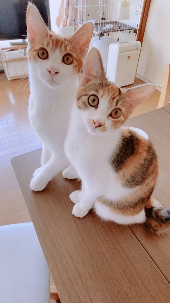 | 特徴(性格など) | 【毛色】三毛猫 【性格】活発で小さいサイズのぬいぐるみが好きでよく くわえて持って歩いて遊んでいます メイクしてるのを見るのが好きで、メイクしだすと目の前まで近付いてきて匂い嗅いで 座ってジーッと見つめてきます お水は氷が入ったお水が大好きです! 兄弟の茶白くんと一緒に引き取ってくれる方のみになります |